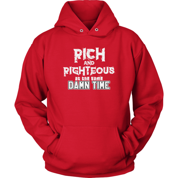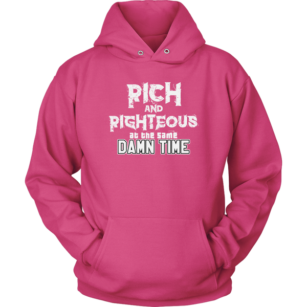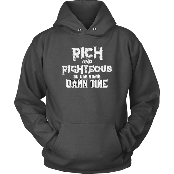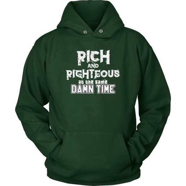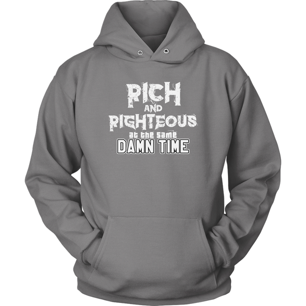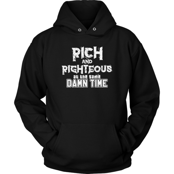 Affirm that you are striving for righteous and wealth, simultaneously, with the Rich AND Righteous At The Same Damn Time hoodie. Encourage all who see your hoodie to do the same....with a little swag.